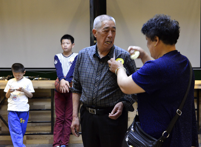家长在首映式中贴上“爱的微笑”