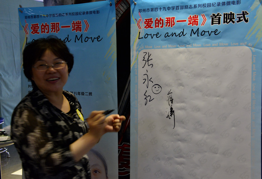 5月17日是第25次全国助残日,郑州49中联合郑州市盲聋哑学校共同拍摄的校园纪录体微电影《爱的那一端》在郑州奥斯卡建文影城首映,该影片全部由师生自导自演。