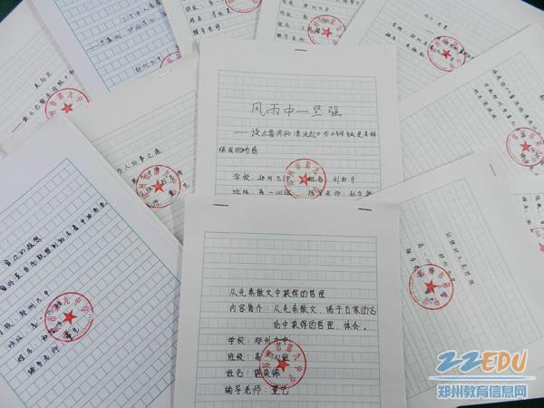郑州九中语文组老师集体研讨、认真批阅、精心筛选学生上交习作。